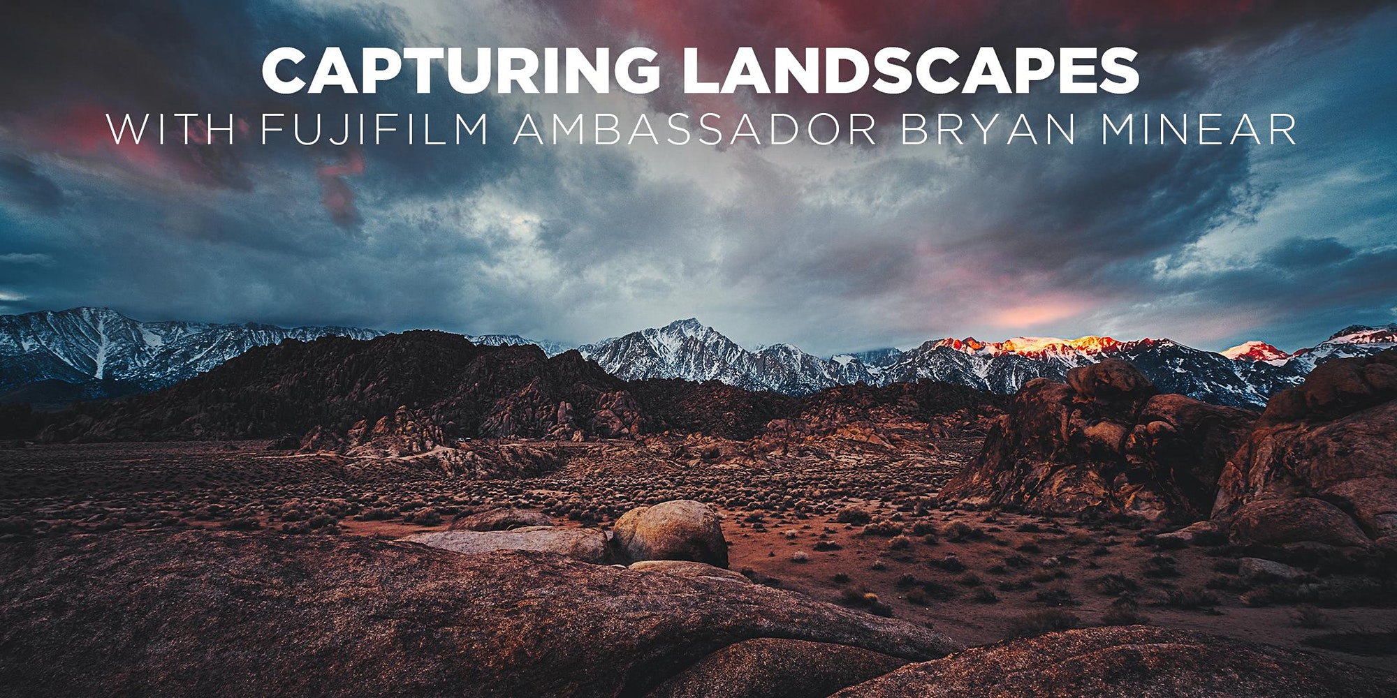 Join Fujifilm Ambassador Bryan Minear for a workshop on his inspriation, technique, and process of capturing ethereal and surreal landscape photography with Fujifilm cameras!