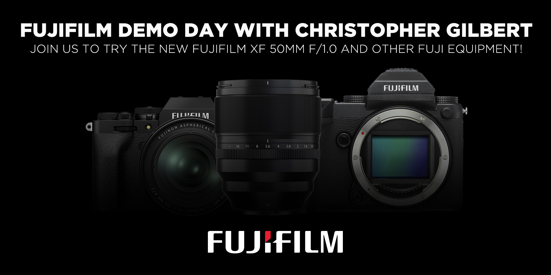 Join Midwest Photo and Local Fujifilm Product Specialist Christopher Gilbert to try out the latest gadgets and gear from Fujifilm. By signing up you’ll have the opportunity to try out various Fujifilm X and GFX cameras and lenses including the new XF 50mm f/1.0!