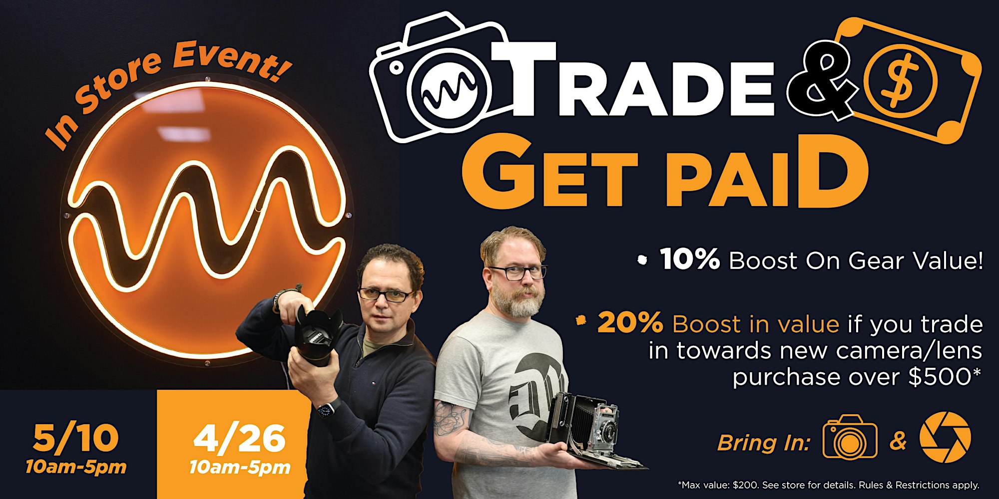 - 10% Gear Value Boost: Bring in any gear (new, used, must be working) and receive a 10% boost on its value. Some exclusions may apply.